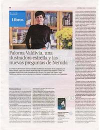 Paloma Valdivia, una ilustradora estrella y las nuevas preguntas de Neruda [entrevista] / [artículo] : Pablo Retamal Navarro. La Tercera (Diario : Santiago, Chile) Diciembre 31, 2022, página 50 1 página : ilustración en color ; 37 cm . .