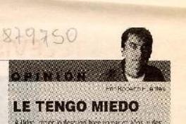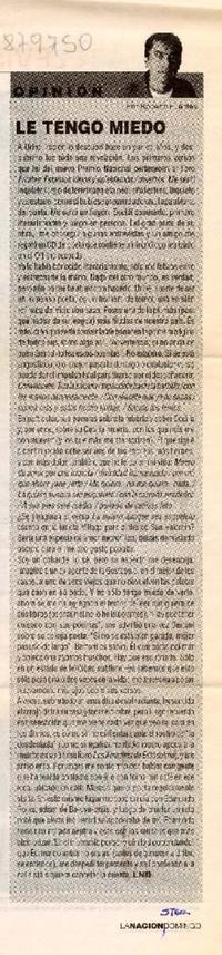 Le tengo miedo [artículo] / Roberto Fuentes. La Nación (Diario : Santiago, Chile)-- sept. 5, 2004, p. 60 retr. .