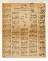 Alone [artículo] / M. C. G. PEC (Revista : Santiago, Chile)-- no 314 (enero 1969), p. 23. 1 página : ilustración en blanco y negro. .