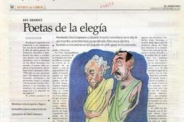 Poetas de la elegía [artículo] / Francisco Véjar. El Mercurio (Diario : Santiago, Chile)-- sept. 14, 2002, p. 12. .