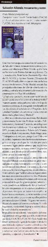 Salvador Allende. Pensamiento y acción [artículo] / Daniel Aranda. Le Monde diplomatique (Diario : Santiago, Chile)-- no 91 (nov. 2008), p. 38. .