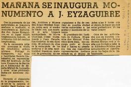 Mañana se inaugurá monumento a J. Eyzaguirre [artículo]