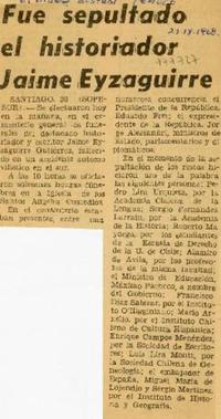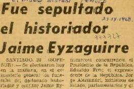 Fue sepultado el historiador Jaime Eyzaguirre [artículo] El Austral (Temuco, Chile)-- sept. 21, 1968. .