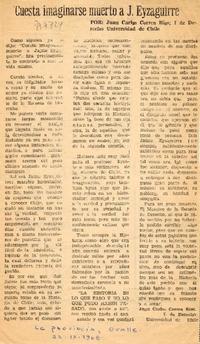 Cuesta imaginarse muerto a J. Eyzaguirre [artículo] / Juan Carlos Correa Ríos. La Provincia (Diario : Ovalle, Chile)-- sept. 22, 1968. .