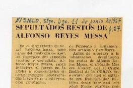 Sepultados restos de Alfonso Reyes Messa. [artículo] El Siglo (Diario : Santiago, Chile)-- jun. 11, 1967, p. 27. .