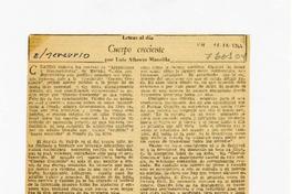 Cuerpo creciente [artículo] / Luis Alberto Mansilla. El Mercurio (Diario : Santiago, Chile)-- sept. 11, 1966. .