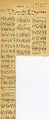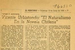 Vicente Urbistondo, "El naturalismo en la novela chilena" [artículo] / Hernán del Solar. El Mercurio (Santiago, Chile)-- jun. 12, 1966, p. 7. .