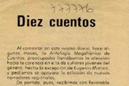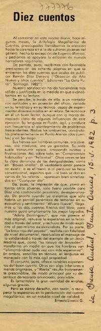 Diez cuentos [artículo] / Ernesto Livacic G. La Prensa Austral (Punta Arenas, Chile)-- mayo 15, 1982, p. 3. .