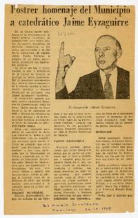 Postrer homenaje del Municipio a catedrático Jaime Eyzaguirre [artículo] El Diario Ilustrado (Santiago, Chile)-- sept. 26, 1968. .