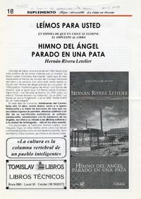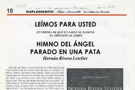 Materias: Autores chilenos - Rivera Letelier, Hernán - Himno del angel parado en una pata