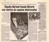 Claudio Bertoni invade librería con cientos de zapatos destrozados [entrevista] / [artículo] : Rodrigo Castillo R. Las Últimas Noticias (Diario : Santiago, Chile)-- sept. 18, 2004, p. 37. .