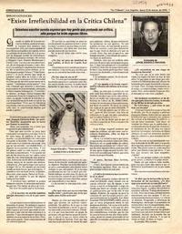 "Existe irreflexibilidad en la crítica chilena" [artículo] / Jorge Abasolo Aravena. La Tribuna (Los Angeles). -- mar. 13, 1995, p. 7. .