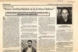 "Existe irreflexibilidad en la crítica chilena" [artículo] Jorge Abasolo Aravena.