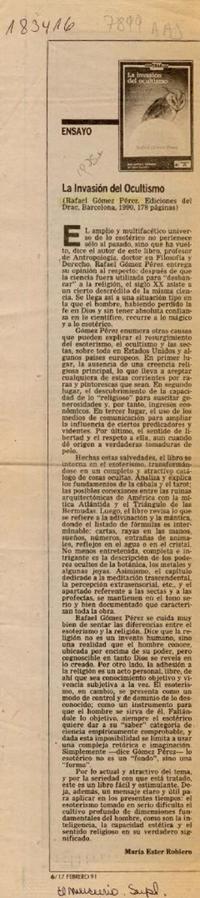 La invasión del ocultismo [artículo] / María Ester Roblero. El Mercurio (Diario : Santiago, Chile)-- feb. 17, 1991, p. 6 (suplemento). il. .