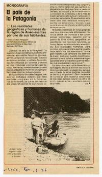El país de la Patagonia [artículo] / J. Q. Ercilla (Revista : Santiago, Chile)-- no. 2753 (mayo 4, 1988) p. 36. retr. .