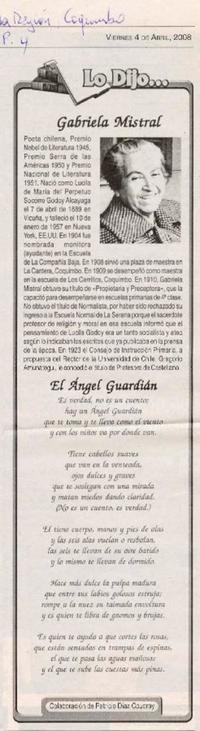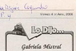 Gabriela Mistral [artículo] / Patricio Díaz Coudray. La Región (Coquimbo, Chile)-- br. 4, 2008, p. 4. .