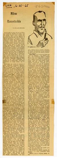 Nikos Kazantzakis [artículo] / Marcelo Segal. Las Últimas Noticias (Diario : Santiago, Chile)-- nov. 6, 1965. .