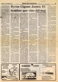 Byron Gigoux James: el hombre que vino del mar [artículo] / Sofía Sayago Siggelkow. Atacama (Diario : Atacama, Chile)-- dic. 24, 1989, p. 9. .