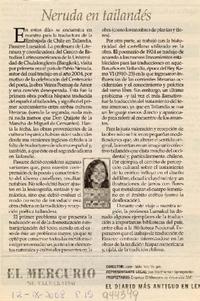 Neruda en tailandés [artículo] / Macarena Roca. El Mercurio de Valparaíso (Diario : Chile) sept. 12, 2008, p. 15. .