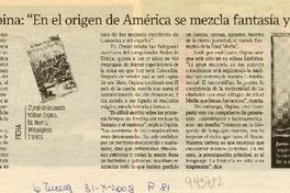 William Ospina: "En el origen de América se mezcla fantasía y realidad" [artículo] La Tercera (Diario: Santiago, Chile) oct. 31, 2008, p. 81 .