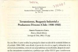 Terratenientes, burguesía industrial y productores directos (Chile: 1900-1960) [artículo] / Jorge Chuaqui. Revista de Sociología (Santiago, Chile)-- no. 17 (2003) p. 174-175. .