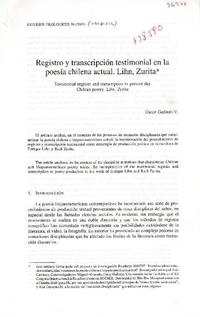 Registro y transcripción testimonial en la poesía chilena actual. Lihn, Zurita [artículo] / Oscar Galindo V. Estudios Filológicos (Revista : Valdivia, Chile)-- no. 38 (2003) p. 19-29. .