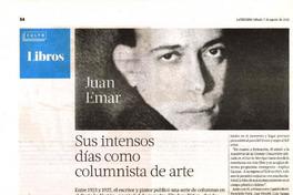 Juan Emar Sus intensos días como columnista de arte / [artículo] : Pablo Retamal Navarro. La Tercera (Diario : Santiago, Chile)-- ago. 7, 2021, p. 54. .