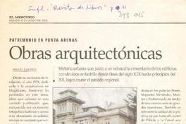 Obras arquitectónicas [artículo] / Miguel Laborde. El Mercurio (Diario : Santiago, Chile)-- jun. 15, 2002, p. 11 (suplemento "Revista de Libros") 1 página : ilustraciones en color 25 cm. .