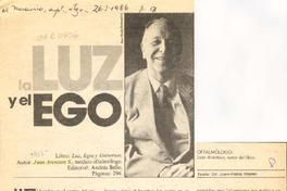 La luz y el ego [artículo] / Juan Pablo Illanes. El Mercurio (Diario : Santiago, Chile)-- ene. 26, 1986, p. 13 (suplemento) 1 página : ilustración en blanco y negro ; 20 cm. .