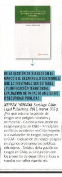De la gestión de riesgos en el marco del desarrollo sostenible Que lo inevitable sea evitable ¿planificación territorial, evaluación de impacto ambiental o seguridad pública? [artículo] : En Concreto (Revista : Santiago, Chile)-- no. 195, (Noviembre 2019), p. 90. .