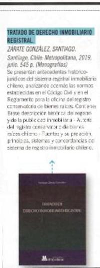 Tratado de derecho inmobiliario registral [artículo]. En Concreto (Revista : Santiago, Chile)-- no. 200, (Enero 2020), p. 93. .