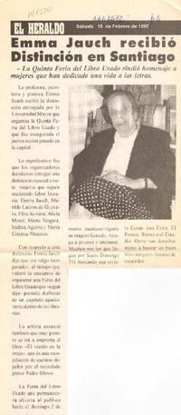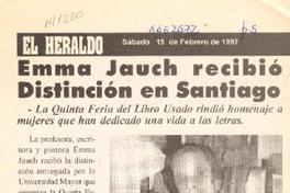 Emma Jauch recibió distinción en Santiago [artículo] El Heraldo (Diario : Linares, Chile)-- febrero 15, 1997, página 5. 1 página : ilustracion en blanco y negro ; 31 cm. .