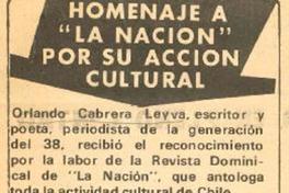 Homenaje a "La Nación" por su acción cultural. [artículo] La Nación (Diario : Santiago, Chile)-- set. 17, 1972, p.5. 1 página : 21 cm. .