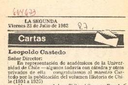 Leopoldo Castedo [artículo] / Pedro Godoy P. La Segunda (Diario : Santiago, Chile)-- jul. 23, 1982, p. 7. 1 página : ilustraciones en blanco y negro; 14 cm. .