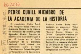 Pedro Cunill miembro de la Academia de la Historia. [artículo] La Nación (Diario : Santiago, Chile)-- jul. 5, 1972, p. 13. .