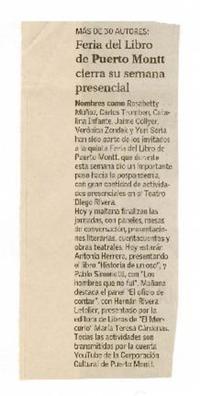 Feria del libro de Puerto Montt cierra su semana presencial [artículo] / El Mercurio (Diario : Santiago, Chile)-- nov. 6, 2021, p. A8. .