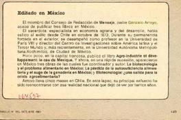 Editado en México. [artículo] Mensaje (Revista : Santiago, Chile)-- no. 383 (oct. 1989) p. 449. 1 página : 10,5 cm. .