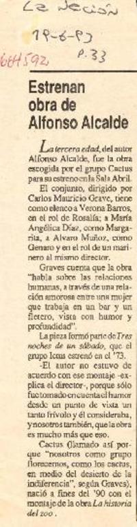 Estrenan obra de Alfonso Alcalde. [artículo] La Nación (Diario : Santiago, Chile)-- jun. 19, 1993, p. 33. .