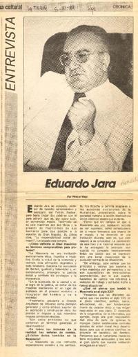 Eduardo Jara [artículo] / Plinio el Viejo. La Tercera (Diario : Santiago, Chile)-- nov. 5, 1989, p. 18 (segundo cuerpo) 1 página : ilustraciones en blanco y negro; 38 cm. .
