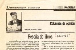 Reseña de libros [artículo] / Marino Muñoz Lagos. La Prensa Austral (Diario : Punta Arenas, Chile)-- dic. 7, 1995, p. 2. 1 página : ilustraciones en blanco y negro; 22 cm. .