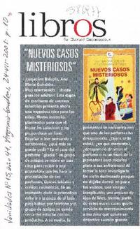 "Nuevos casos misteriosos" [artículo] Vanidades (Revista : Santiago, Chile)-- n° 15 (julio 24, 2001), p. 10. 1 página : ilustraciones en color; 17 cm. .