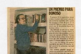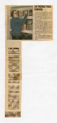 Un premio para Donoso. [artículo] La Tercera (Diario : Santiago, Chile)-- jul. 15, 1990, p. 15, (suplemento). .