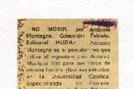 Materias: Montagne, Antoine - Autores chilenos - No morir