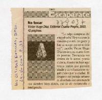 No tocar. [artículo] Las Últimas Noticias (Diario : Santiago, Chile)-- mayo 29, 2004, p. 37. .