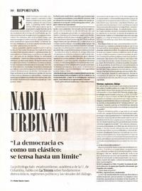 Nadia Urbinati [entrevista] / [artículo] : Pablo Marín Castro La Tercera (Diario : Santiago, Chile)-- ago. 8, 2021, p. 30-31. .