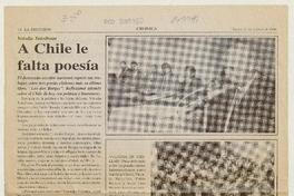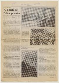 A Chile le falta poesía [entrevista] / [artículo] : Volodia Teitelboim La Discusión (Diario : Chillán, Chile)-- oct. 31, 1996, p. 10-11 retr. .