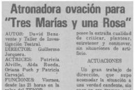 Atronadora ovación para "Tres Marías y una Rosa". [artículo] La Estrella de Iquique (Iquique, Chile)-- dic. 13, 1985, p. 4. .