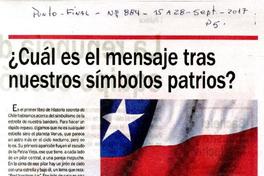 ¿Cuál es el mensaje tras nuestros símbolos patrios? [artículo] / Punyo Final (Revista : Santiago, Chile)-- no 884 (septiembre 2017), p. 5. .