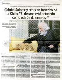 Gabriel Salazar y crisis en Derecho de la Chile "El decano está actuando como patrón de empresa" [entrevista] / [artículo] : Melissa Forno. Las Últimas Noticias (Diario : Santiago, Chile)-- oct. 23, 2017, p 34. .
