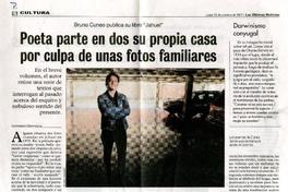 Bruno Cuneo publica su ibro "Jahuel" Poeta parte en dos su propia casa por culpa de unas fotos familiares [artículo] : Leonardo Sanhueza.